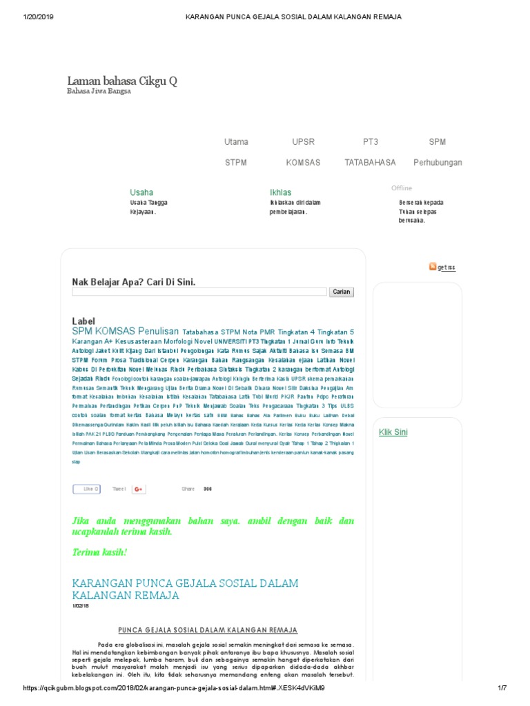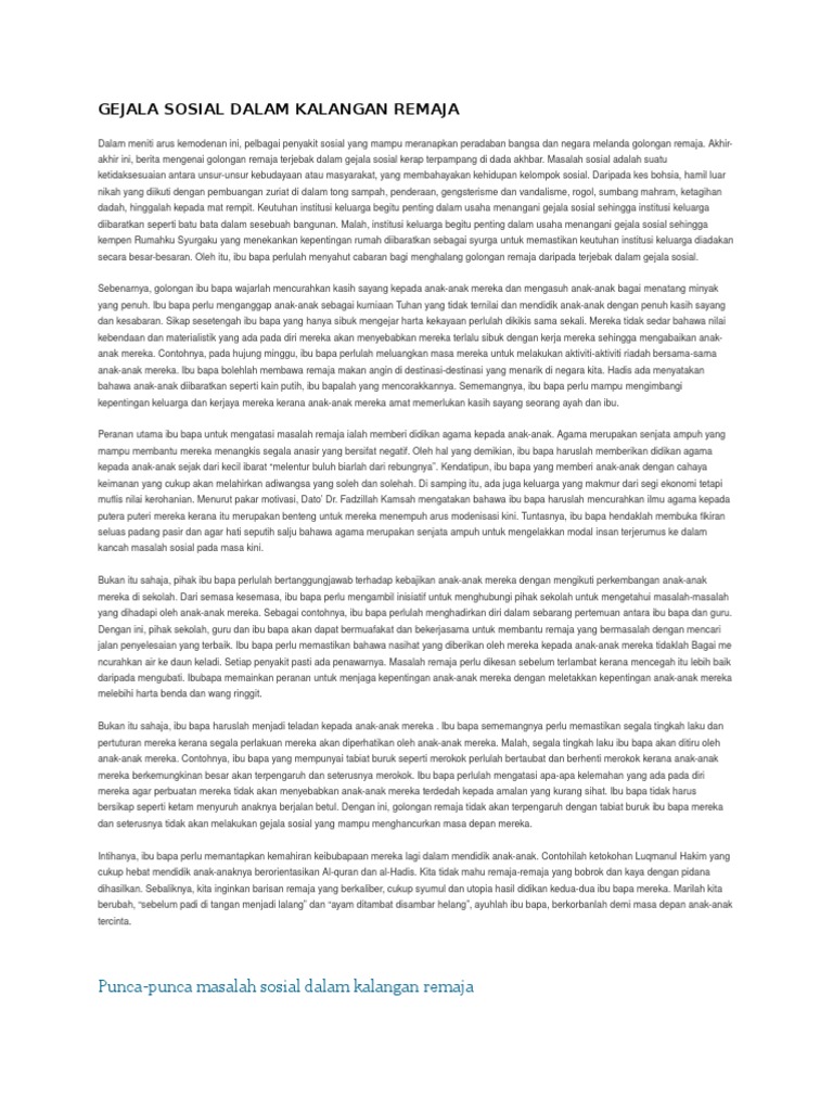 Doc karangan punca punca gejala sosial dalam gejala sosial dapat ditakrifkan sebagai satu kemelut sosial dan kekeliruan yang timbul dalam kalangan remaja akibat daripada.
