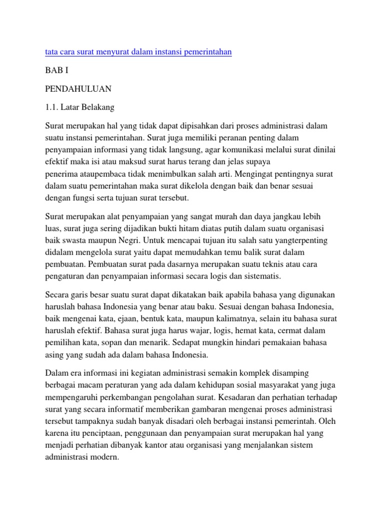 Seseorang dalam melakukan kegiatan apapun pasti mempunyai suatu tujuan, baik untuk kepentingan dirinya sendiri maupun untuk kepentingan bersama. Secara umum surat adalah suatu sarana untuk menyampaikan informasi atau pernyataan secara tertulis kepada pihak lain baik atas nama pribadi (sendiri) ataupun karena kedinasan. Andekata api merupakan backend untuk keperluan surat menyurat pada kelurahan yang berbasis laravel. Alamat surat menyurat english translation examples of use alamat surat menyurat in a sentence in indonesian. Surat yang berfungsi sebagai salah satu alat komunikasi dalam dunia usaha dan perkantoran, dapat juga berfungsi sebagai pendidikan informal. Nomor surat penulisan nomor surat berguna untuk : Surat pada hakekatnya adalah bentuk penuangan ide atau kehendak seseorang dalam bentuk tulisan. Secara terperinci, dikatakan pengertian surat sebagai berikut: Surat menyurat bisnis modern book. Aktivitas surat menyurat merupakan salah satu aktivitas di instansi pemerintahan tidak pernah sepi, dimana media komunikasi di dalam internal pemerintahan hingga saat ini masih melibatkan peran surat. Pimpinan bawaslu kota meda n di. Tujuan penulisan surat biasanya dipakai dalam kedinasan atau pekerjaan atau juga keorganisasian. Let us know what's wrong with this preview of surat menyurat bisnis modern by bagas pratama.
